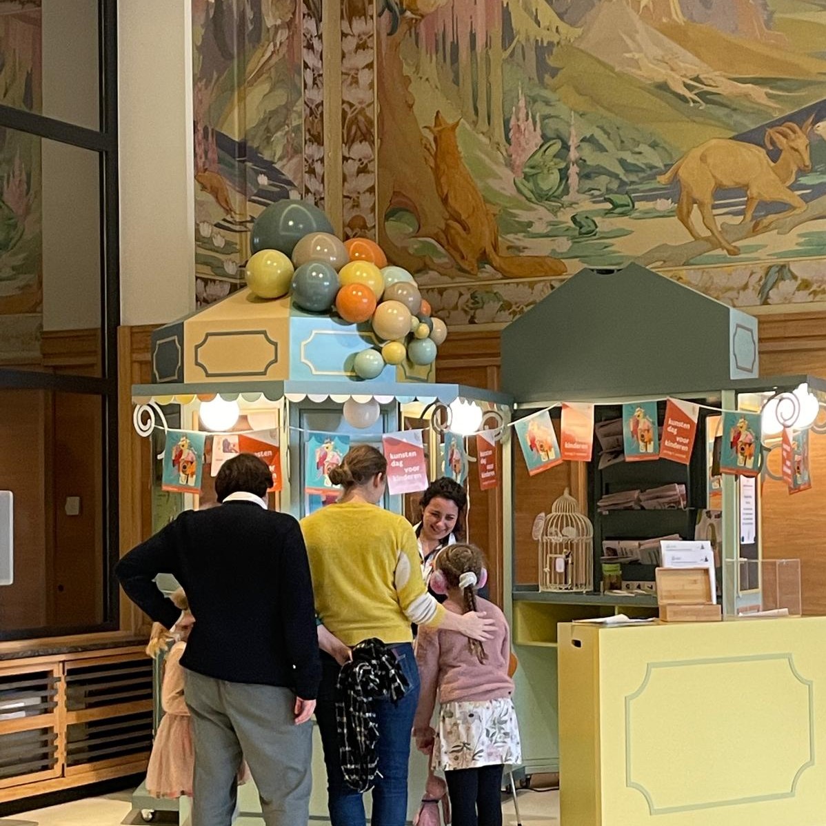 Avant de vous aventurer à travers l’histoire européenne, jouez à quelques jeux accrochés au Kiosque et laissez-vous charmer par les murs colorés de la salle des Fables qui sont remplis de peintures restaurées du peintre belge Camille Barthélémy, représentant les Fables de Jean de la Fontaine – vous en connaissez peut-être quelques-unes.